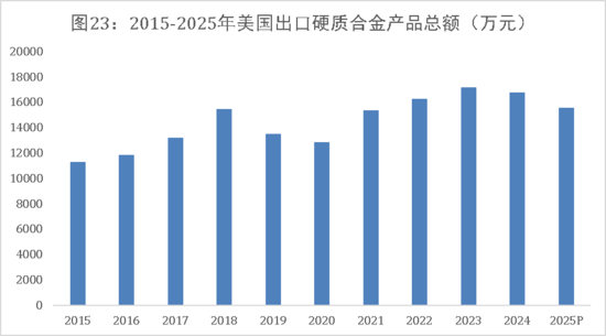 在貿易伙伴方面,墨西哥和加拿大是美國硬質合金最主要的出口目的地,兩國每年從美國進口的硬質合金產品均占美國出口總量的約三分之一。