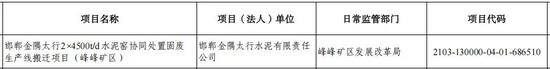 2025年5月21日,河北省工業(yè)和信息化廳發(fā)布《邯鄲金隅太行水泥有限責(zé)任公司水泥熟料產(chǎn)能搬遷方案變更公告》顯示,將邯鄲金隅太行水泥有限責(zé)任公司水泥熟料產(chǎn)能搬遷方案予以變更,變更后為邯鄲金隅太行水泥有限責(zé)任公司日產(chǎn)9000噸水泥熟料項目產(chǎn)能搬遷方案。該項目退出產(chǎn)能來自同公司一條2000t/d、一條2500t/d、一條4500t/d,置換比例1:1,該項目計劃點火投產(chǎn)時間為2027年6月30日
