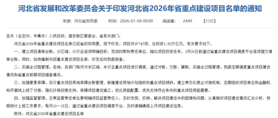 近日,河北省發(fā)展和改革委員會關(guān)于印發(fā)河北省2026年省重點建設(shè)項目名單的通知稱,河北省2026年省重點建設(shè)項目名單已經(jīng)省政府同意,現(xiàn)予印發(fā)。項目共計747項,總投資1.56萬億元。其中包括邯鄲金隅太行2×4500t/d水泥窯協(xié)同處置固廢生產(chǎn)線搬遷項目(峰峰礦區(qū))