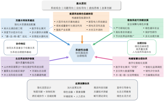 基本原則包括:堅持系統(tǒng)觀念,統(tǒng)籌水資源、水環(huán)境、水生態(tài)治理,協(xié)調(diào)上下游、左右岸、干支流關系,推進山水林田湖草沙一體化保護和系統(tǒng)治理;堅持問題導向,聚焦流域發(fā)展面臨的突出矛盾和問題,精準施策、標本兼治;堅持目標導向,錨定碳達峰碳中和目標,倒逼產(chǎn)業(yè)結(jié)構(gòu)、能源結(jié)構(gòu)、交通運輸結(jié)構(gòu)調(diào)整優(yōu)化;堅持底線思維,牢固樹立安全發(fā)展理念,統(tǒng)籌發(fā)展和安全,確保水安全、糧食安全、能源安全、生態(tài)安全;堅持改革創(chuàng)新,深化重點領域和關鍵環(huán)節(jié)改革,強化科技創(chuàng)新引領,激發(fā)綠色發(fā)展內(nèi)生動力。系統(tǒng)性治理路徑與協(xié)同機制如下。