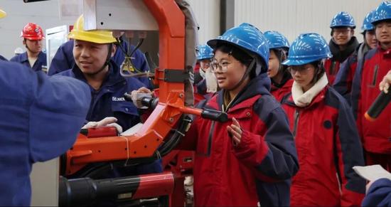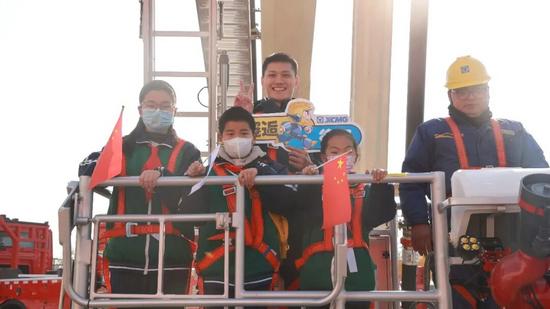 在工廠參觀時,一個原本有些恐高的小女孩,在志愿者鼓勵下登上登高車體驗。落地后,她眼睛亮亮地說:“我長大了,要設(shè)計出更高的車!”