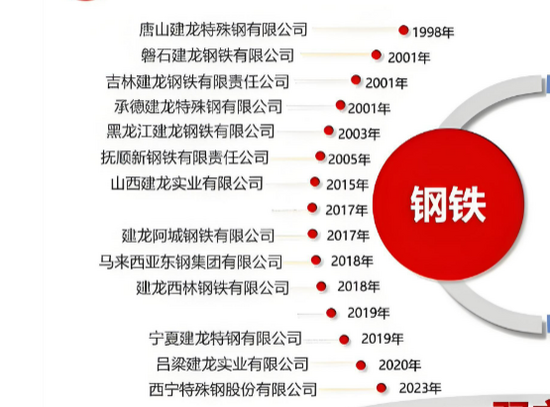 并購之外,建龍集團還完成了對西林鋼鐵、阿城鋼鐵、包鋼萬騰、申銀特鋼、海威鋼鐵的重組整合。