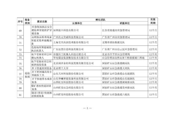 其中,礦山冒頂事故雷視一體化監(jiān)測預警裝備、礦井皮帶火災早期預警與應急處置裝備、煤礦透水快速封堵裝備、地下受限密閉空間搬運機器人、井下快速封閉裝備、井下密閉墻高效小型破拆工具、井下快速排水成套裝備、隧道(巷道)快速掘進救援裝備8個涉煤項目入選應急管理裝備孵化項目。