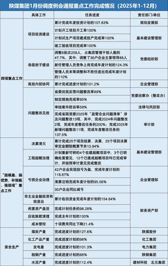 1月9日,陜煤集團召開1月份調度例會。會議總結12月份及2025年重點工作任務完成情況,分析當前工作存在的問題和不足,安排部署近期重點工作;相關職能部門分別匯報了項目投資建設、高效協(xié)同發(fā)展、各級班子建設、問題整改及安全環(huán)保、生產經營、閑置資產盤活、虧損企業(yè)治理等重點工作推進情況。