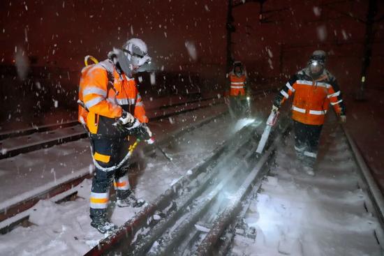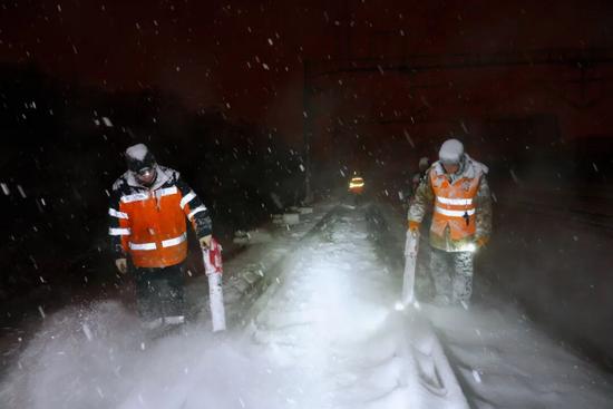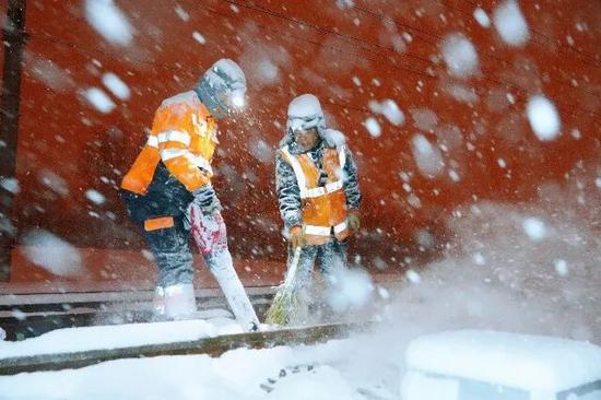 鐵路職工頂風(fēng)冒雪、協(xié)同作戰(zhàn)