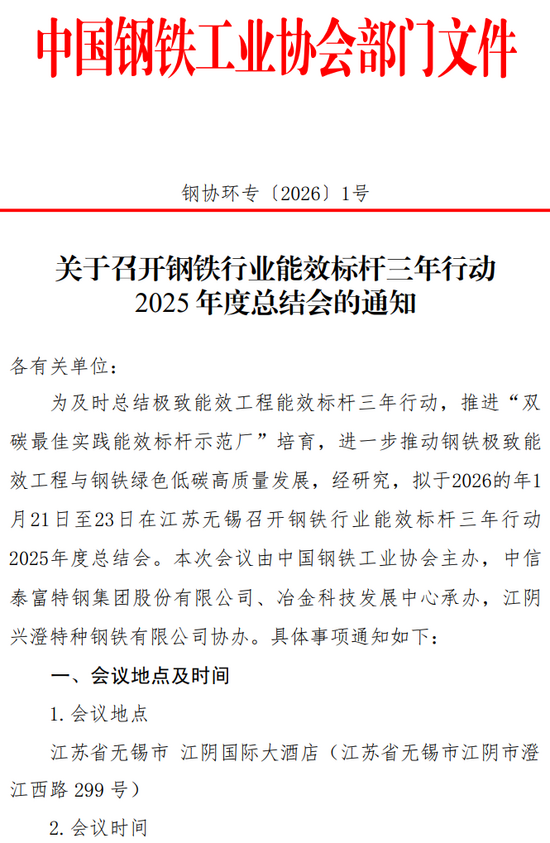 關于召開鋼鐵行業(yè)能效標桿三年行動2025年度總結會的通知如下:
