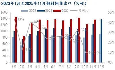 出口消費(fèi)仍是支撐國(guó)內(nèi)淡季消費(fèi)的核心,海外基建與產(chǎn)業(yè)鏈重塑過程,對(duì)于這一結(jié)構(gòu)起到關(guān)鍵性影響。不過隨著基數(shù)的提升,未來高速且穩(wěn)定的增長(zhǎng)面臨較大挑戰(zhàn),因此剛需消費(fèi)依然存在,但可出現(xiàn)的持續(xù)大幅回升可能性則相對(duì)偏低。從海外消費(fèi)區(qū)域分布看,東南亞、南亞、非洲、中東仍是主要消費(fèi)市場(chǎng)。隨著海外的粗鋼產(chǎn)能上升,也是支撐國(guó)內(nèi)制品出口最為核心的點(diǎn)。從出口數(shù)據(jù)看,25年11-12月份的見解出口量仍有明顯的沖量過程,根據(jù)企業(yè)訂單調(diào)研,這部分量1月份仍可維持。且在這一過程中,企業(yè)也反饋出口訂單并沒有出現(xiàn)明顯的減弱,這也是對(duì)于國(guó)內(nèi)制造業(yè)有一個(gè)明顯的支撐的邏輯點(diǎn)。