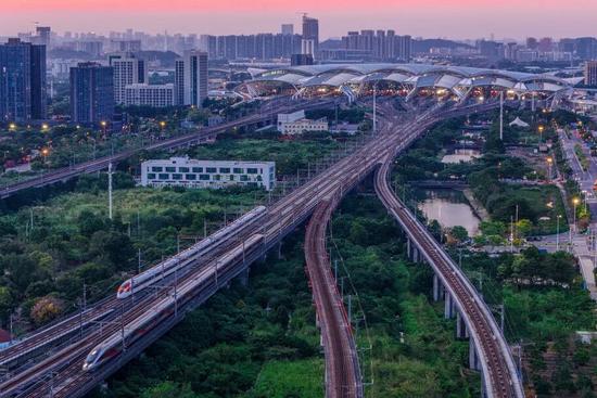 在粵港澳大灣區(qū),優(yōu)化進(jìn)出香港跨境列車開行安排,香港西九龍與上海虹橋間高鐵動臥列車在每周五至周一每日雙向開行的基礎(chǔ)上,每周二至周四每日增開高鐵動臥列車2列,實(shí)現(xiàn)滬港間每日均有夕發(fā)朝至高鐵動臥列車開行;增開香港西九龍至上海虹橋動車組列車2列,??磕暇┠稀⒑戏誓系日?,香港特別行政區(qū)通達(dá)內(nèi)地的車站突破100個,進(jìn)一步促進(jìn)香港與內(nèi)地間的人員往來和經(jīng)貿(mào)交流。