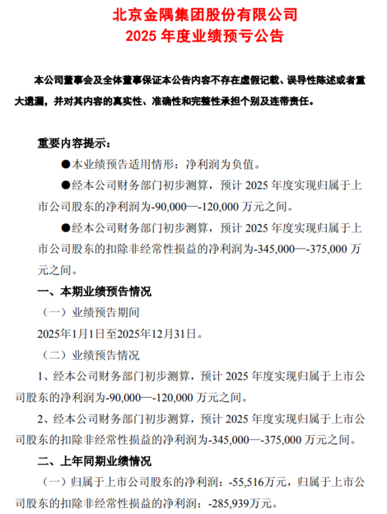 2026年1月15日,金隅集團(tuán)發(fā)布2025年度業(yè)績預(yù)虧公告顯示,預(yù)計2025年度實現(xiàn)歸屬于上市公司股東的凈利潤虧損9億元—12億元,去年同期虧損5.55億元。報告期內(nèi),公司建材及房地產(chǎn)業(yè)務(wù)均處于行業(yè)下行周期。水泥業(yè)務(wù),持續(xù)優(yōu)化戰(zhàn)略布局,扎實推進(jìn)降本增效工作,經(jīng)營業(yè)績同比實現(xiàn)扭虧為盈;房地產(chǎn)業(yè)務(wù)受市場影響,需求減弱,銷售價格承壓,影響公司房地產(chǎn)業(yè)務(wù)經(jīng)營利潤。
