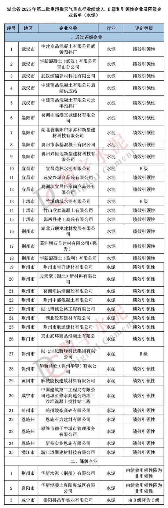 根據(jù)公告,水泥行業(yè)共有35家企業(yè)獲評(píng)績(jī)效引領(lǐng)性B級(jí)(32家為績(jī)效引領(lǐng)性、3家為B級(jí))。