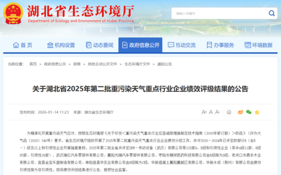 日前,湖北省生態(tài)環(huán)境廳發(fā)布《關(guān)于湖北省2025年第二批重污染天氣重點(diǎn)行業(yè)企業(yè)績(jī)效評(píng)級(jí)結(jié)果的公告》稱,為精準(zhǔn)化開(kāi)展重污染天氣應(yīng)對(duì),按照生態(tài)環(huán)境部《關(guān)于印發(fā)<重污染天氣重點(diǎn)行業(yè)應(yīng)急減排措施制定技術(shù)指南(2020年修訂版)>的函》(環(huán)辦大氣函〔2020〕340號(hào))要求,省生態(tài)環(huán)境廳組織開(kāi)展了2025年第二批重污染天氣重點(diǎn)行業(yè)企業(yè)績(jī)效分級(jí)工作,并對(duì)2020-2024年已評(píng)定的部分B(含B-)級(jí)及以上和引領(lǐng)性企業(yè)開(kāi)展抽查復(fù)核。