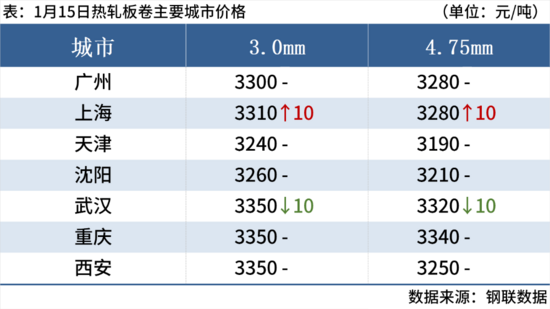 熱軋板卷:1月15日,全國(guó)24個(gè)主要城市4.75mm熱軋板卷均價(jià)3309元/噸,較上一交易日上漲2元/噸。鋼廠復(fù)產(chǎn)節(jié)奏加快,一月份熱系基本無(wú)檢修計(jì)劃,計(jì)劃產(chǎn)量增幅較大。下游終端按需補(bǔ)庫(kù),投機(jī)性需求較差。經(jīng)銷(xiāo)商觀望情緒明顯,年底多以收款為主,現(xiàn)貨議價(jià)空間不大。分地區(qū)來(lái)看,北方受天氣影響,室外施工進(jìn)度受限,成材供需雙弱,成交意愿顯弱;華東地區(qū)預(yù)計(jì)1月到貨增量,社庫(kù)去庫(kù)速度放緩,成本支撐下短期處于供需弱平衡狀態(tài),市場(chǎng)缺乏突破動(dòng)力。預(yù)計(jì)16日全國(guó)熱軋板卷價(jià)格維穩(wěn)運(yùn)行。