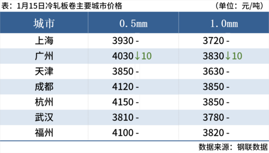 冷軋板卷:1月15日,全國(guó)24個(gè)主要城市1.0mm冷卷均價(jià)3840元/噸,較上一交易日下跌1元/噸。市場(chǎng)情緒依舊謹(jǐn)慎觀望,終端采購(gòu)需求釋放有限,日內(nèi)交投氛圍較為冷清,且成交主要集中在低價(jià)資源。庫(kù)存方面,15日Mysteel監(jiān)測(cè)29個(gè)城市庫(kù)存,本周冷軋板卷社會(huì)庫(kù)存215.99萬(wàn)噸,周環(huán)比減少2.35萬(wàn)噸,月環(huán)比減少5.00萬(wàn)噸。臨近年底,需求持續(xù)萎縮,商家出貨壓力逐步凸顯,庫(kù)存消化緩慢。綜合來(lái)看,預(yù)計(jì)16日冷軋價(jià)格或?qū)⒊掷m(xù)窄幅震蕩運(yùn)行為主。