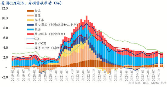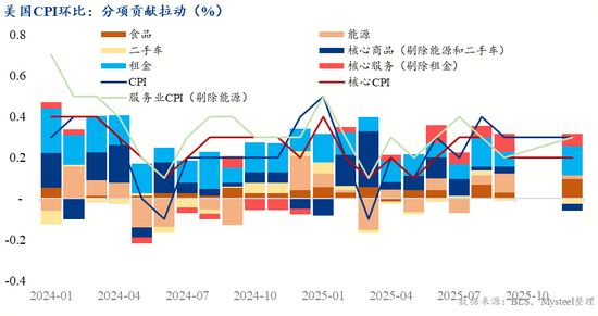 分項看,四季度以來美國CPI主要增量貢獻在于能源價格,2025年1-8月,能源商品與服務(wù)對CPI的月度拉動平均為-0.09%,而9月至今這一平均拉動達到0.2%。同時,前期持續(xù)堅挺的房租通脹隨地產(chǎn)市場同步降溫,房租通脹對CPI的拉動從1-8月平均1.4%,降低至1.16%。