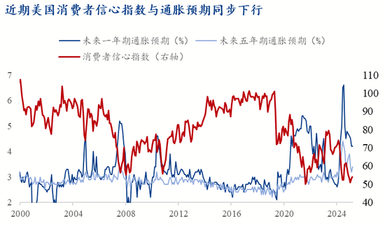 此外,消費信心的下降,以及關(guān)稅問題的炒作減少,市場對未來1年和5年期的通脹預期均較高位回落,基本修復了2025年美國關(guān)稅出臺后的漲幅。