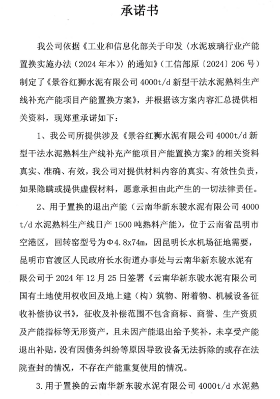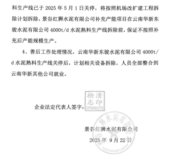 景谷紅獅水泥有限公司日產4000噸熟料生產線補充產能項目產能置換方案