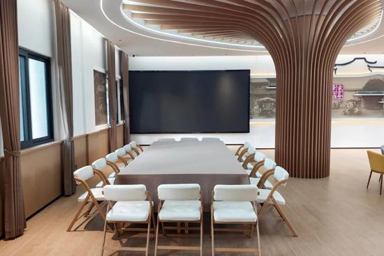 整潔的長(zhǎng)桌與舒適座椅有序擺放
