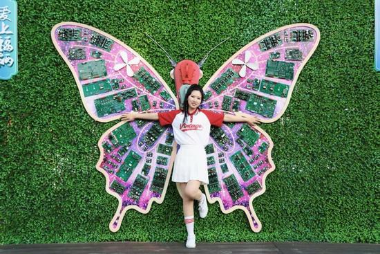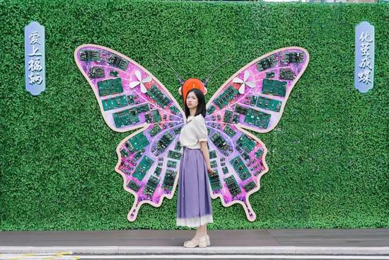 我是剛?cè)肼毜男氯?,看著“化繭成蝶”那里的“電路板蝴蝶”,深受觸動(dòng),希望自己也能快速成長(zhǎng)。我下班后跟同事在打卡墻前拍了張合影,發(fā)了朋友圈。家里人都為我點(diǎn)贊了!