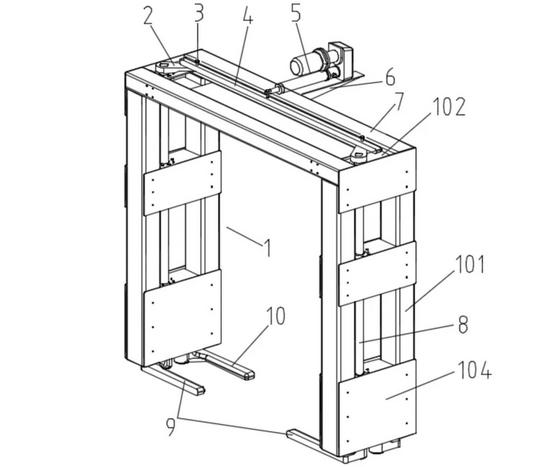專利摘要顯示,發(fā)明涉及吊夾設(shè)備領(lǐng)域的一種吊具四爪同步運行機構(gòu),包含連桿和兩個擺板,以及由橫架和兩個立架組成的門架結(jié)構(gòu);每個立架均轉(zhuǎn)動安裝有立向的主傳動軸和副傳動軸,主傳動軸和副傳動軸的軸身分別同軸固定有相互嚙合的主動齒輪和從動齒輪,主傳動軸和副傳動軸的下端分別連接有主動吊爪和從動吊爪;兩個擺板的一端板面分別與兩個主傳動軸的上端垂直固定,每個擺板的另一端板面均設(shè)有沿擺板長度方向的長條孔,連桿的兩端均垂直固定有與相應(yīng)擺板的長條孔活動插配的連軸;橫架安裝有伸縮缸,伸縮缸的伸縮桿桿端與連桿的桿身垂直連接;該吊具四爪同步運行機構(gòu)結(jié)構(gòu)簡單緊湊,能夠提高夾持吊運的同步性、可靠性和適用性。
