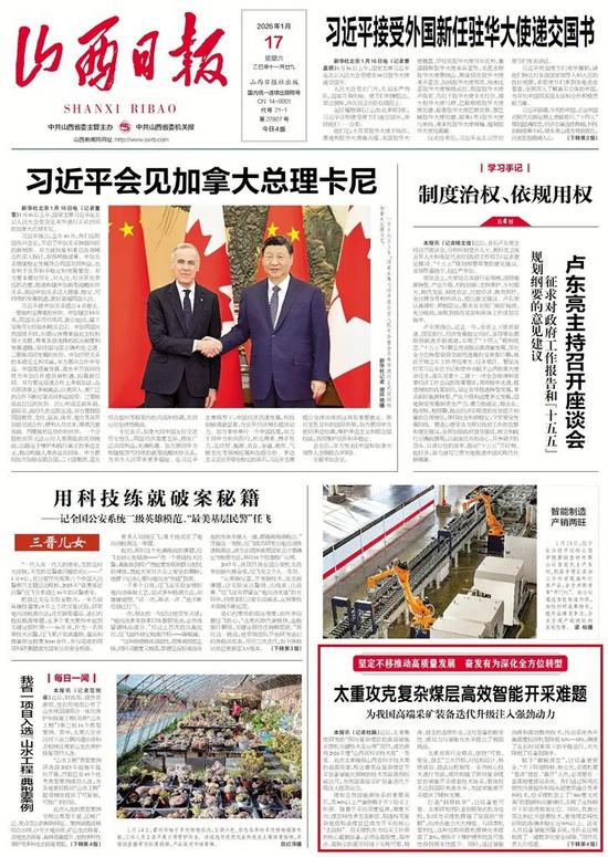 1月17日,山西日?qǐng)?bào)頭版聚焦太重,在【堅(jiān)定不移推動(dòng)高質(zhì)量發(fā)展 奮發(fā)有為深化全方位轉(zhuǎn)型】專欄中,對(duì)太重榮獲2024年度“山西省科學(xué)技術(shù)獎(jiǎng)”一等獎(jiǎng)的科技成果——“面向復(fù)雜煤層的高端智能采煤機(jī)關(guān)鍵技術(shù)及應(yīng)用”項(xiàng)目進(jìn)行了深度報(bào)道。