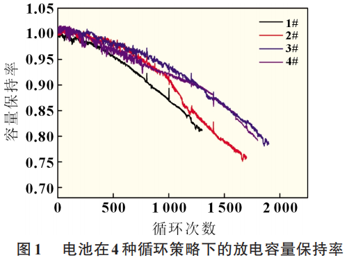 以上4種策略重復(fù)進(jìn)行循環(huán)充放電至電池容量保持率為80%。