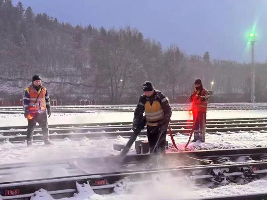 “多虧了車站發(fā)的保暖衣物,室外作業(yè)時,我們穿著雙層棉褲、特制羽絨加羊皮毛的棉襖,很暖和?!边B結(jié)員陳天麟說。