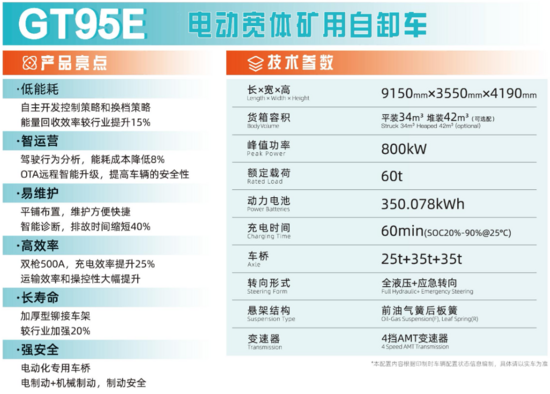 作為客戶的信賴之選,GT95E電動寬體車專為重載下坡工況打造,核心優(yōu)勢盡顯: