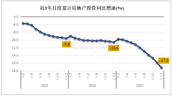 2025年,全國房地產(chǎn)開發(fā)投資8.28萬億元,同比下降17.2%,降幅較1-11月擴(kuò)大1.3個(gè)百分點(diǎn),較去年同期擴(kuò)大6.6個(gè)百分點(diǎn)。其中,住宅投資6.35萬億元,同比下降16.3%。