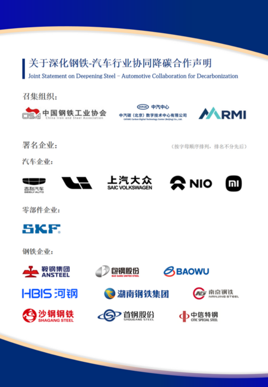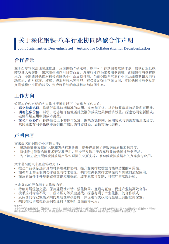 關(guān)于深化鋼鐵-汽車(chē)行業(yè)協(xié)同降碳合作聲明: