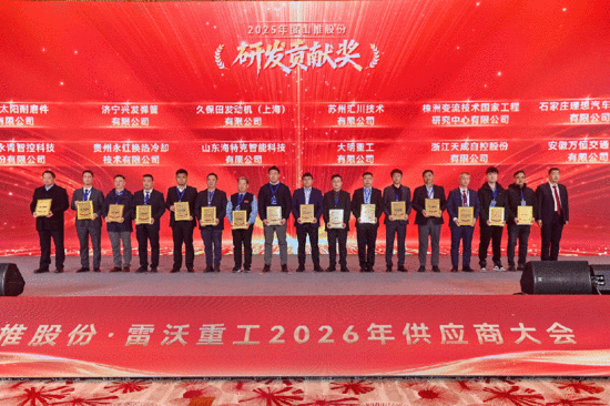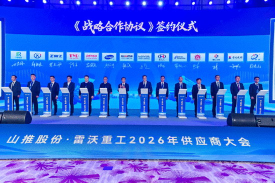 1月19日,以“開啟新程 協(xié)同共贏”為主題的山東重工山推股份?雷沃重工2026年供應(yīng)商大會(huì)在青島舉行。山東重工集團(tuán)集采總監(jiān)曲正堂出席并致辭。山推股份黨委書記、董事長李士振,黨委副書記、總經(jīng)理張民出席會(huì)議。