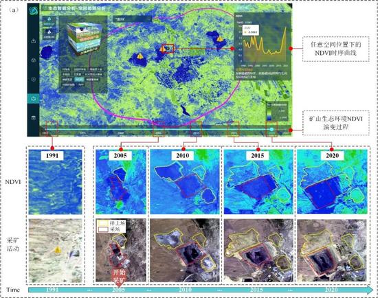 中國(guó)礦業(yè)大學(xué)(北京)李軍教授團(tuán)隊(duì)系統(tǒng)梳理、歸納和剖析了礦區(qū)生態(tài)環(huán)境定量遙感監(jiān)測(cè)的研究進(jìn)展,并在此基礎(chǔ)上,自主研發(fā)了礦山生態(tài)環(huán)境定量遙感監(jiān)測(cè)與智能分析系統(tǒng),簡(jiǎn)稱“礦山生態(tài)天眼” 系統(tǒng)。該系統(tǒng)依托定量遙感監(jiān)測(cè)技術(shù)、大數(shù)據(jù)技術(shù)、WebGIS等信息技術(shù),實(shí)現(xiàn)了對(duì)礦區(qū)“植—土—水—?dú)狻钡榷嘁?、長(zhǎng)時(shí)序生態(tài)參數(shù)的定量反演與智能分析,并具備GIS時(shí)空分析、綜合定量評(píng)價(jià)及自動(dòng)報(bào)告生成等功能。該系統(tǒng)可為礦山生態(tài)環(huán)境的全過(guò)程精準(zhǔn)監(jiān)管、科學(xué)評(píng)估與高效治理提供一體化解決方案,對(duì)于推動(dòng)礦業(yè)綠色低碳轉(zhuǎn)型生態(tài)文明信息化建設(shè)具有重要的理論價(jià)值,工程應(yīng)用前景較好。