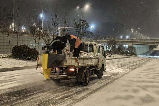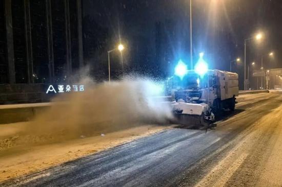 ▲以防滑除雪為重點,組織機械設(shè)備連續(xù)開展除雪作業(yè),及時噴灑融雪劑,防止道路結(jié)冰