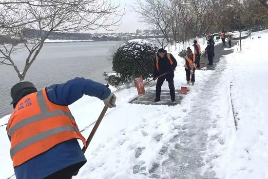 ▲對運營的公園道路采用機械加人工結(jié)合方式除雪