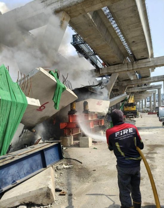 1月20日上午,泰國沙沒沙空府拉瑪二路(Rama II Highway)發(fā)生一起突發(fā)火情,地點正是此前發(fā)生起重機倒塌事故的施工現(xiàn)場。當(dāng)天約11時,工作人員正在清理上周坍塌的起重機及混凝土殘骸時,現(xiàn)場突然冒出火焰并伴隨大量濃煙,一度引發(fā)過往民眾關(guān)注。