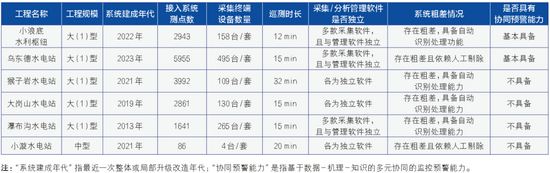本文調(diào)研了國內(nèi)6座不同規(guī)模、不同建成年代典型工程監(jiān)測自動化系統(tǒng),通過分析其核心性能指標,為大壩安全監(jiān)測自動化技術升級提供支撐(見下表)。