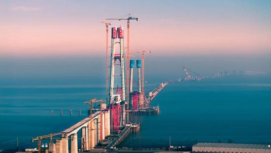 超級(jí)工程新進(jìn)展!杭州灣跨海鐵路大橋首座主塔封頂