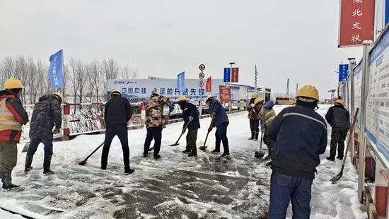 “這場(chǎng)雪來(lái)得突然,但我們?cè)缬袦?zhǔn)備?!表?xiàng)目部負(fù)責(zé)現(xiàn)場(chǎng)安全環(huán)保的人員表示,早在氣象預(yù)警發(fā)布時(shí),項(xiàng)目就已檢查完善應(yīng)急預(yù)案,提前儲(chǔ)備足量融雪劑、防滑墊等物資,并安排相關(guān)責(zé)任人員分片包保巡查,確保響應(yīng)及時(shí)。