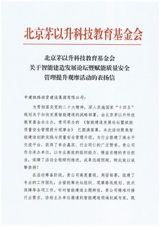 安順路項(xiàng)目獲北京茅以升科技教育基金會(huì)表?yè)P(yáng),高度肯定了項(xiàng)目在活動(dòng)籌備與執(zhí)行中的專(zhuān)業(yè)表現(xiàn),活動(dòng)組織部署有力有序,精心組建專(zhuān)業(yè)團(tuán)隊(duì)統(tǒng)籌規(guī)劃,精準(zhǔn)對(duì)接行業(yè)需求,協(xié)助邀請(qǐng)權(quán)威專(zhuān)家,為參會(huì)者深度展示智能建造的創(chuàng)新實(shí)踐。
