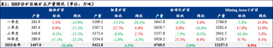 因此,BHP 鐵礦石的今年整體的提產(chǎn)空間預(yù)計較為有限,整體將處于以運營優(yōu)化為主導(dǎo)的產(chǎn)能平臺期,西澳礦區(qū)2026年鐵礦石產(chǎn)量預(yù)計保持相對穩(wěn)定在2.9億噸水平,同比基本持平。