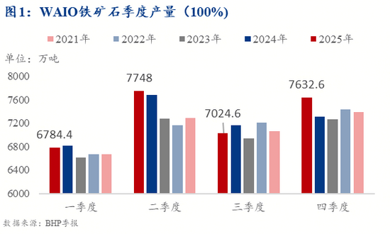 結(jié)合BHP新增產(chǎn)能項目綜合判斷,預(yù)計西澳礦區(qū)2026年鐵礦石產(chǎn)量維持在2.9億噸水平,同比基本持平。本文將以BHP鐵礦業(yè)務(wù)為焦點,解讀其四季度的產(chǎn)銷表現(xiàn)與未來展望。
