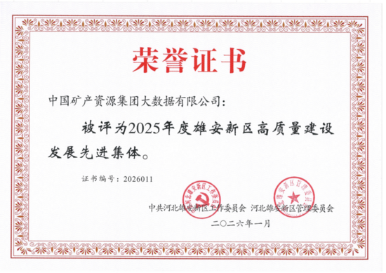 近日,中共河北雄安新區(qū)工作委員會、河北雄安新區(qū)管理委員會發(fā)布決定,對2025年度雄安新區(qū)高質(zhì)量建設發(fā)展先進集體和先進個人進行表彰。中國礦產(chǎn)所屬單位中礦數(shù)據(jù)獲評“2025年度雄安新區(qū)高質(zhì)量建設發(fā)展先進集體”,中礦金石項目管理部總經(jīng)理賈金龍榮獲“2025年度雄安新區(qū)高質(zhì)量建設發(fā)展先進個人”稱號,并獲“年度突出貢獻獎”。