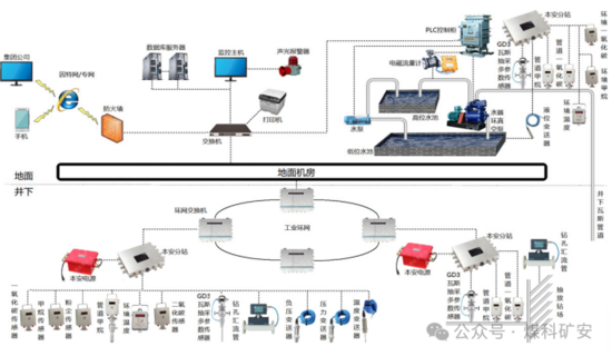 技術特征:依托SCADA系統(tǒng)(數(shù)據(jù)采集與監(jiān)視控制系統(tǒng))和PLC技術,實現(xiàn)對井下環(huán)境參數(shù)的實時采集。