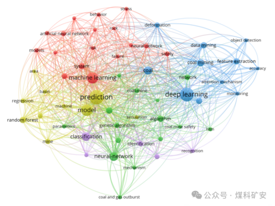 圖2 AI技術在煤礦災害研究中的高頻關鍵詞圖譜