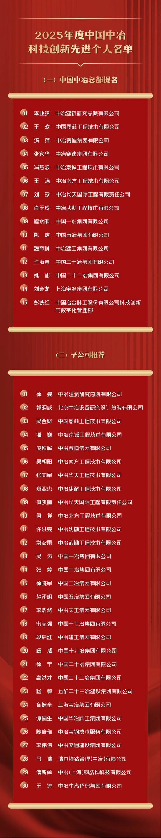 2025年,中國(guó)中冶科技創(chuàng)新工作以習(xí)近平新時(shí)代中國(guó)特色社會(huì)主義思想為指引,全面貫徹落實(shí)黨的二十大、二十屆歷次全會(huì)精神,以國(guó)家重大戰(zhàn)略需求為導(dǎo)向,積極踐行“五大核心要義”和“五個(gè)聚焦”,緊緊圍繞“一創(chuàng)兩最五強(qiáng)”奮斗目標(biāo),持續(xù)推進(jìn)基礎(chǔ)管理提升科技創(chuàng)新體系建設(shè),全面聚焦重大技術(shù)難題攻關(guān)布局,大力促進(jìn)科技創(chuàng)新與產(chǎn)業(yè)創(chuàng)新深度融合,加快培育發(fā)展新質(zhì)生產(chǎn)力,實(shí)現(xiàn)“十四五”圓滿收官,為公司再轉(zhuǎn)型再升級(jí)高質(zhì)量發(fā)展提供了有力的科技支撐。為表彰先進(jìn)、樹立典型、鼓勵(lì)創(chuàng)新,公司評(píng)選出2025年度中國(guó)中冶科技創(chuàng)新先進(jìn)單位、優(yōu)秀團(tuán)隊(duì)、先進(jìn)個(gè)人及優(yōu)秀項(xiàng)目總工,名單已正式發(fā)布。