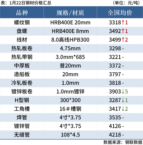1月22日,鋼廠建筑鋼材出廠價持穩(wěn)運(yùn)行。