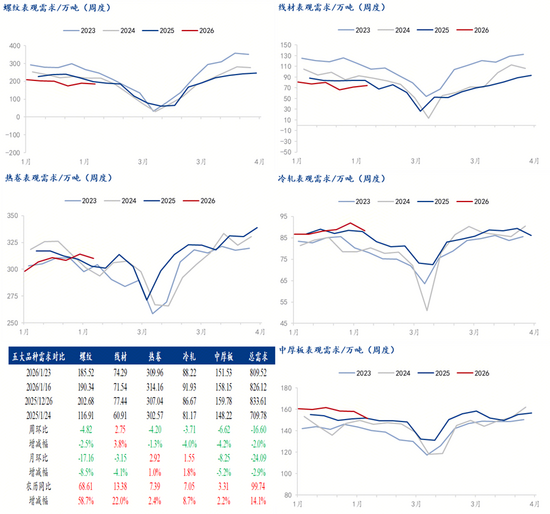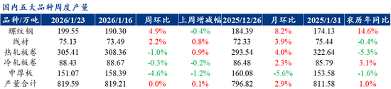 消費方面,本周五大品種周消費量為809.52萬噸,其中建材消費環(huán)比降0.8%,板材消費環(huán)比降2.6%。本周五大品種中建材與板材消費結(jié)構(gòu)保持一致。