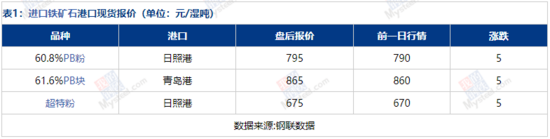 綜上所述,預計明日山東鐵礦石現(xiàn)貨價格震蕩運行。