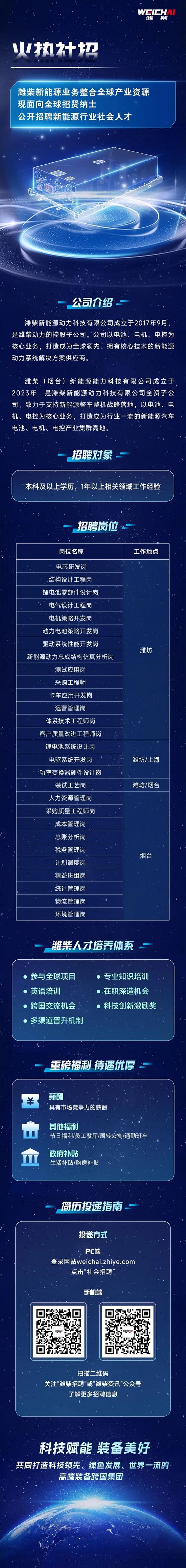濰柴新能源全球社招,高薪崗位等你來(lái)!
