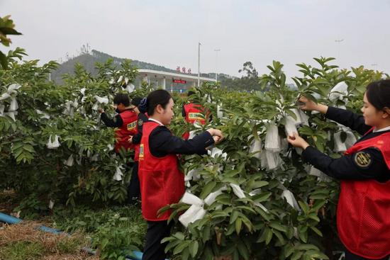 金黃的番石榴壓彎了枝頭,十丈村的果園迎來甜蜜的豐收,1月21日,公路運營公司南玉珠項目經(jīng)理部的“鐵姑娘·竹美團隊”青年志愿者們,身披紅色馬甲,走進了田間地頭。