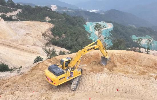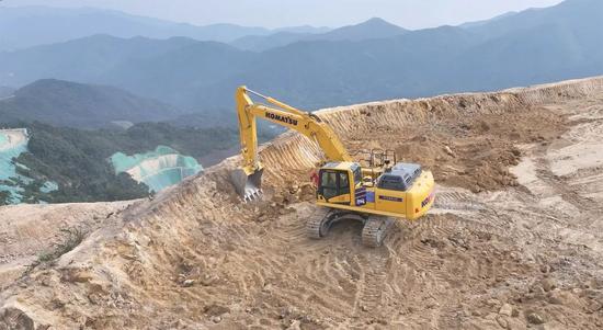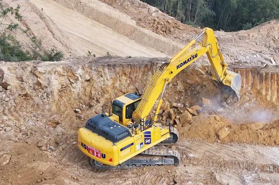 云涌千山動,塵浮機(jī)甲馳。廣東云浮盛產(chǎn)石材,我們此行專門要考察小松挖掘機(jī)的作業(yè)效率。在不遠(yuǎn)處礦山上,一臺嶄新的小松PC395LC-11M0混合動力挖掘機(jī)正在沉穩(wěn)有力地挖掘石料,每一個動作都透出從容的力量。